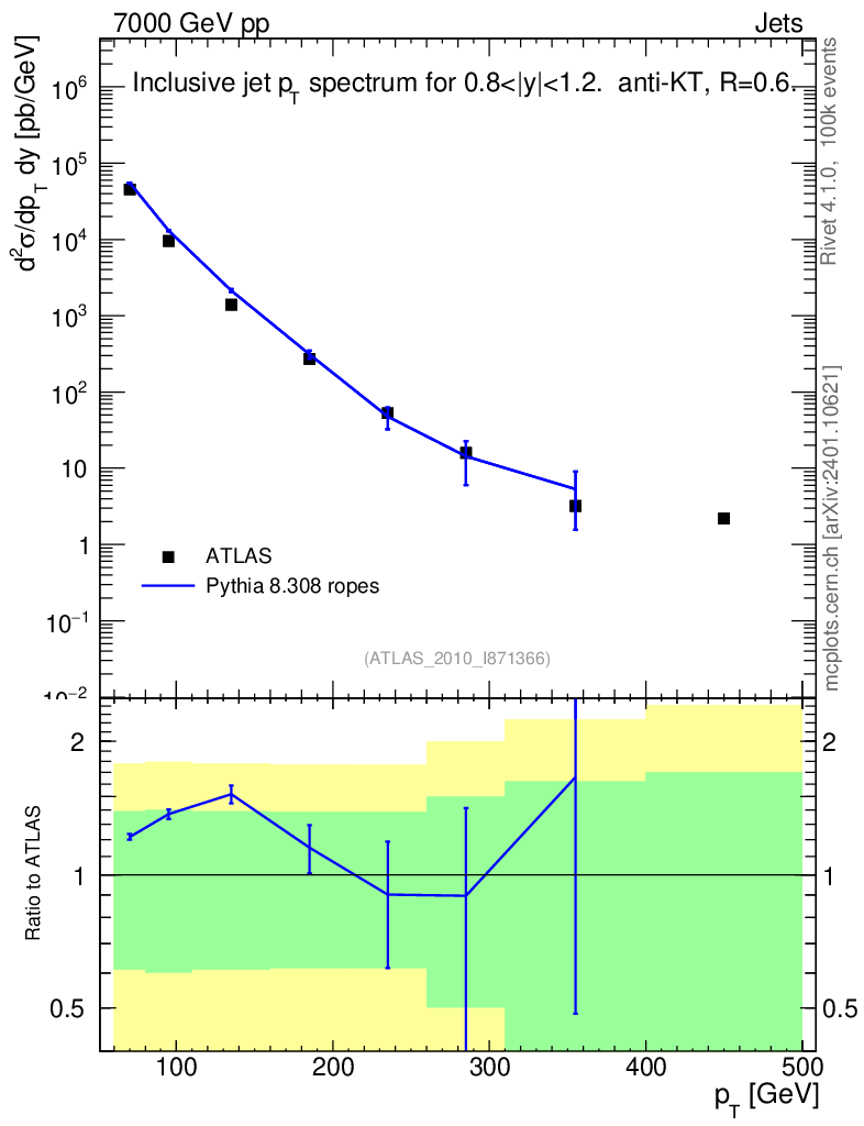 Lines: data, pythia8 8.308 ropes |
