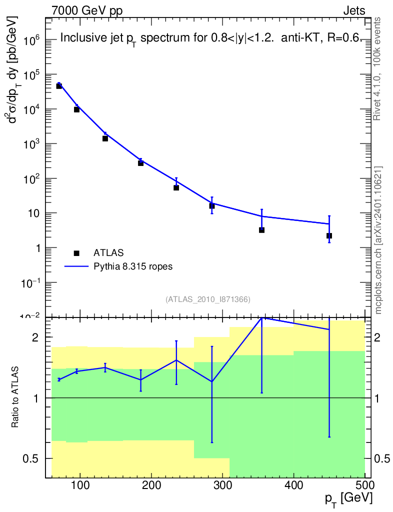 Lines: data, pythia8 8.315 ropes |