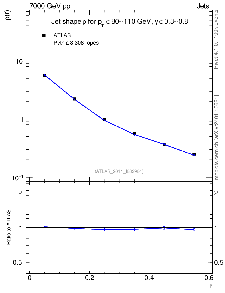 Lines: data, pythia8 8.308 ropes |