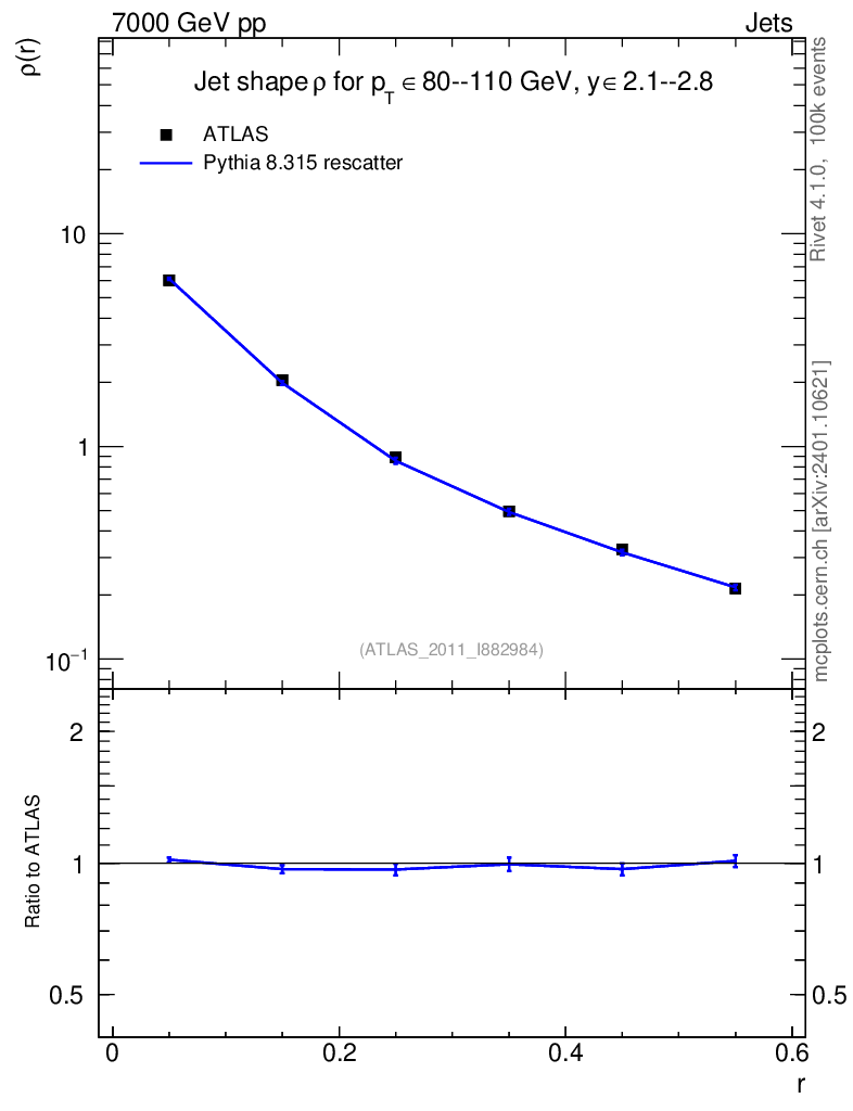 Lines: data, pythia8 8.315 rescatter |
