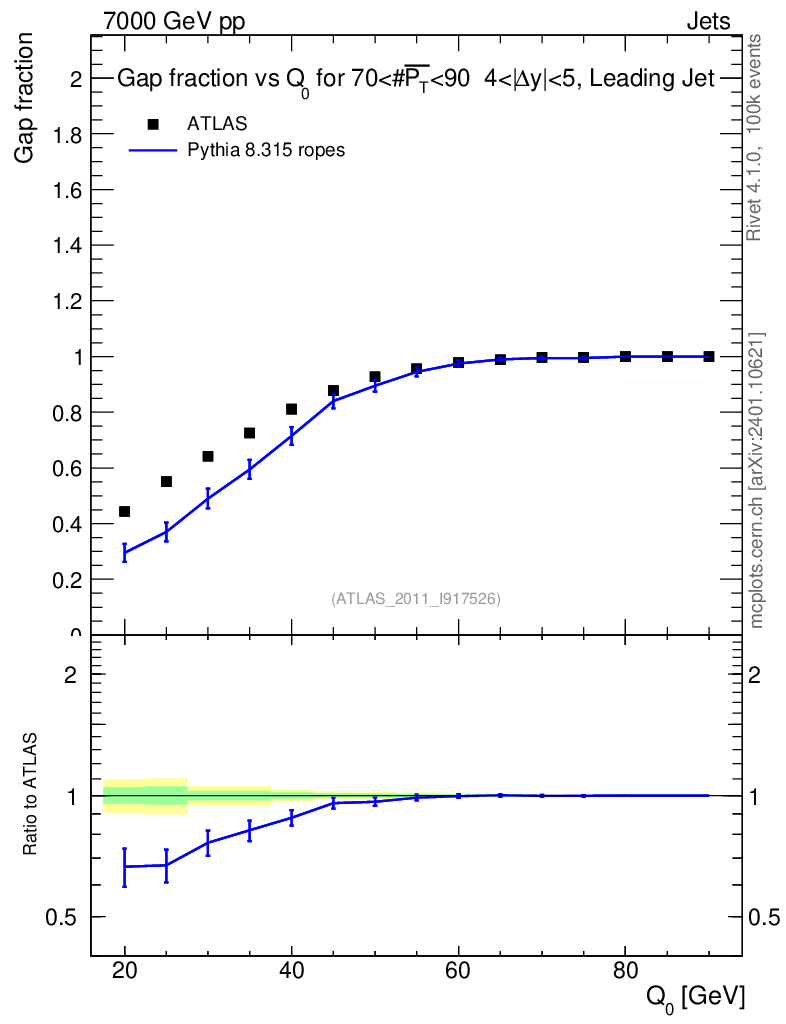 Lines: data, pythia8 8.315 ropes |