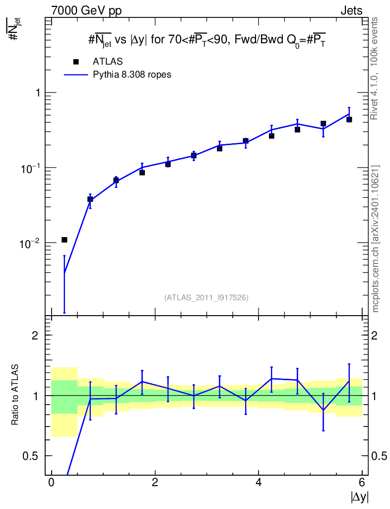 Lines: data, pythia8 8.308 ropes |