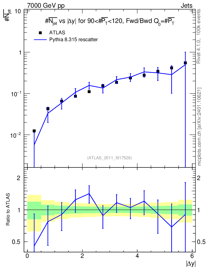 Lines: data, pythia8 8.315 rescatter |