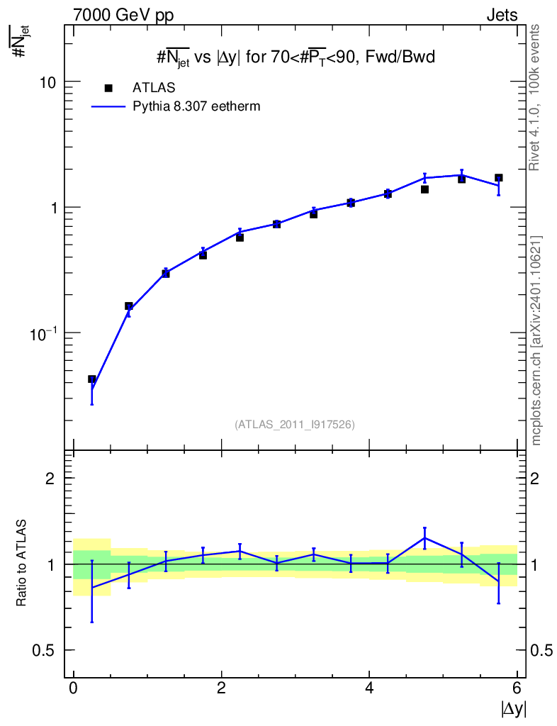 Lines: data, pythia8 8.307 eetherm |