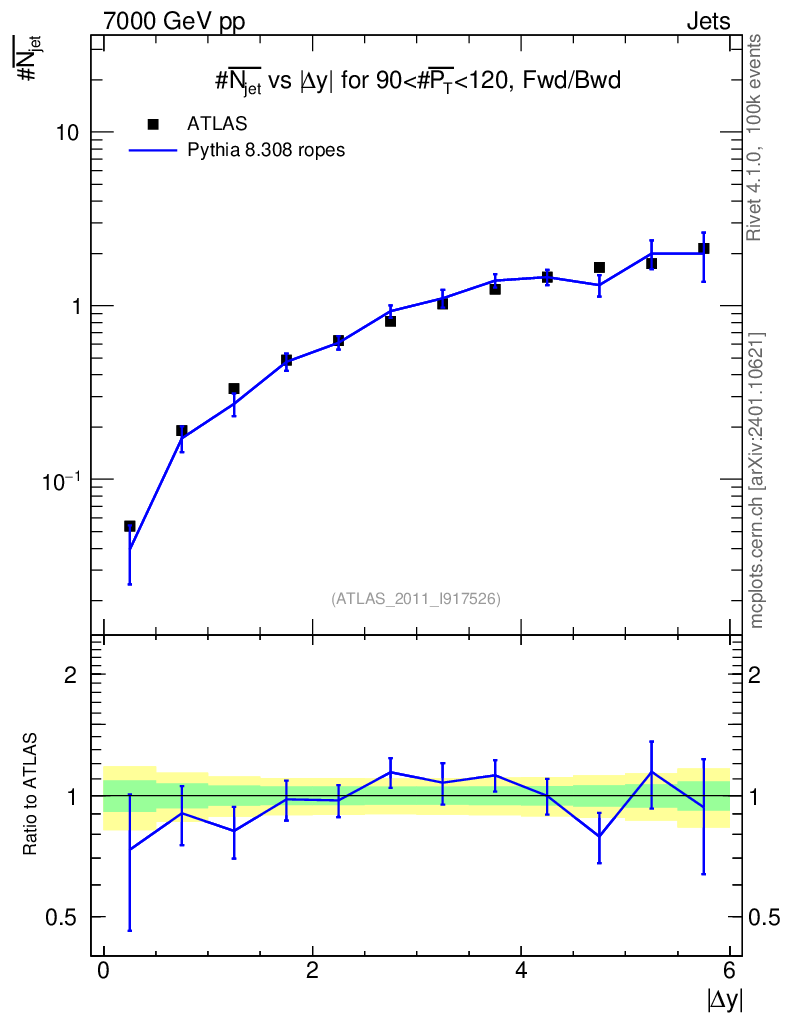 Lines: data, pythia8 8.308 ropes |