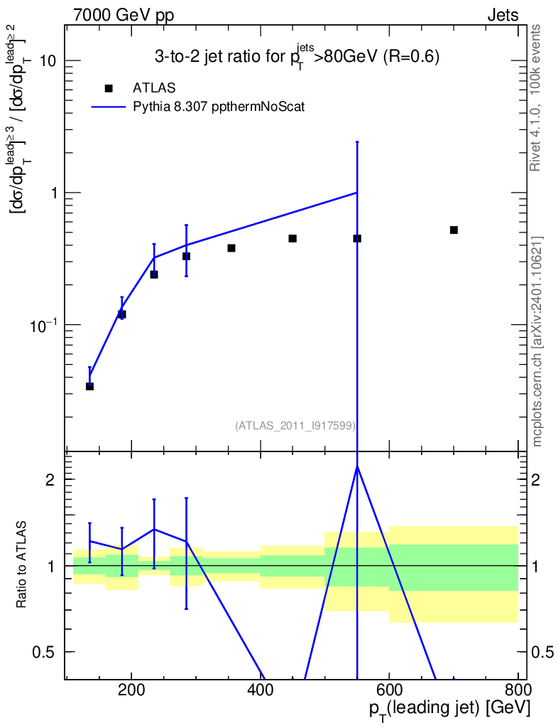 Lines: data, pythia8 8.307 ppthermNoScat |