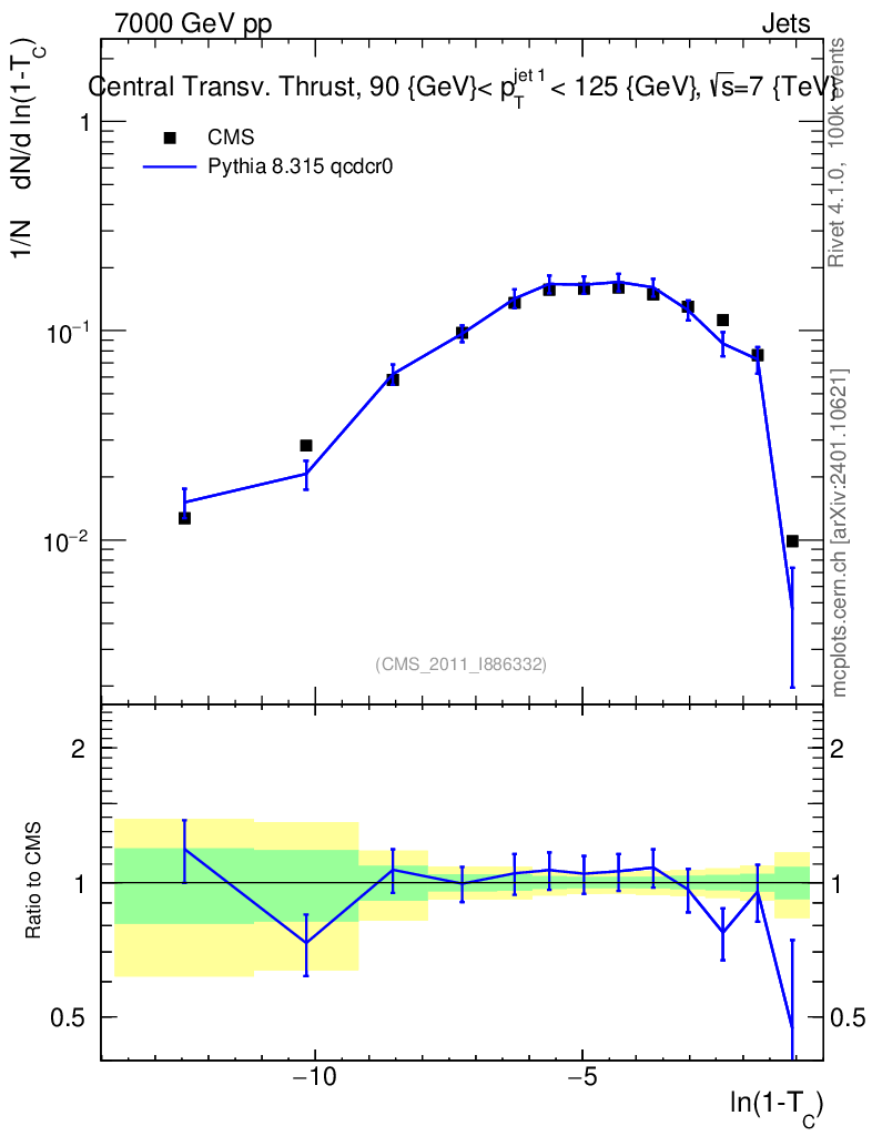 Lines: data, pythia8 8.315 qcdcr0 |