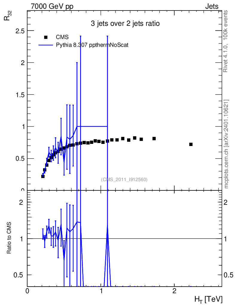Lines: data, pythia8 8.307 ppthermNoScat |