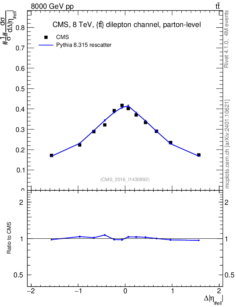 Lines: data, pythia8 8.315 rescatter |