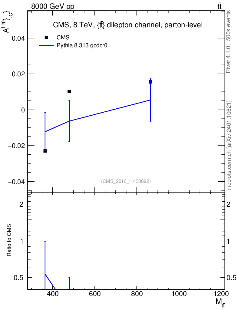 Lines: data, pythia8 8.313 qcdcr0 |
