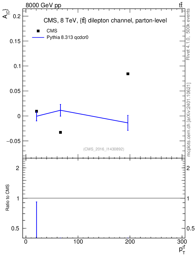 Lines: data, pythia8 8.313 qcdcr0 |