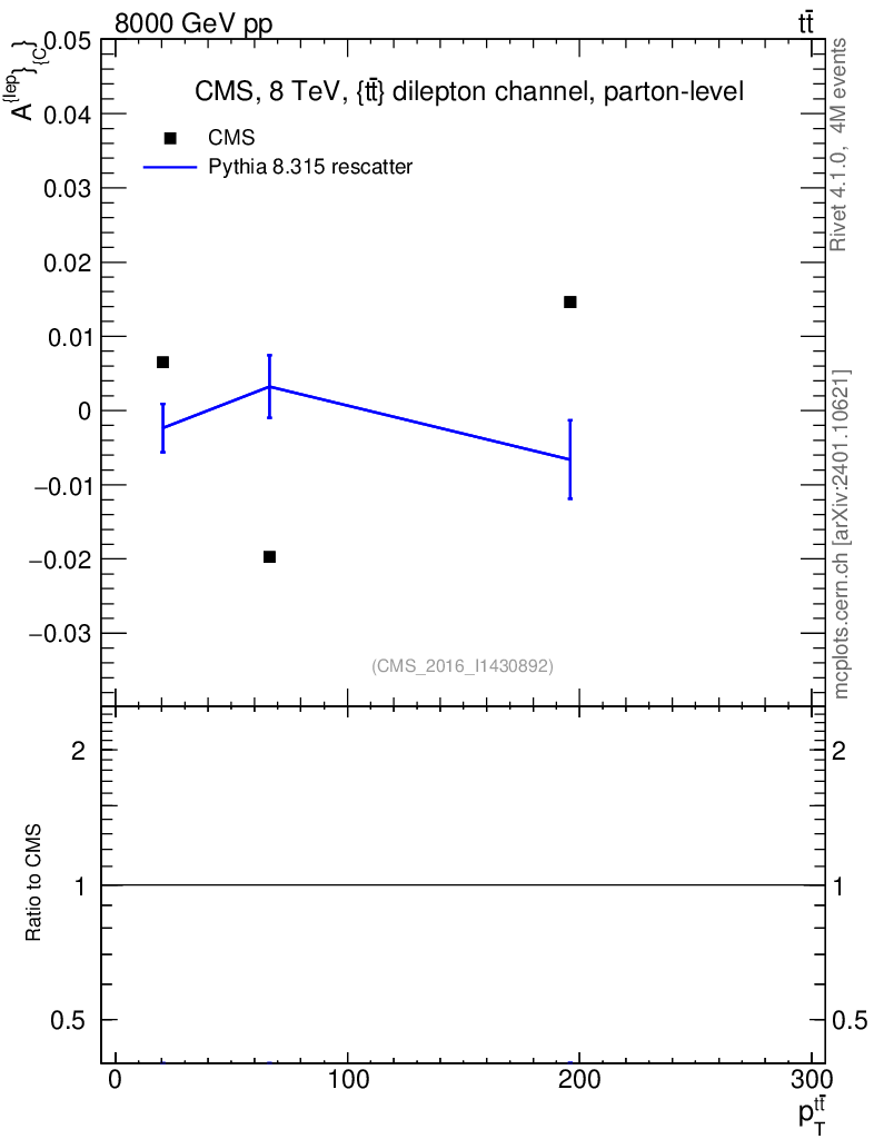 Lines: data, pythia8 8.315 rescatter |