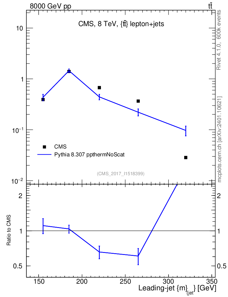 Lines: data, pythia8 8.307 ppthermNoScat |