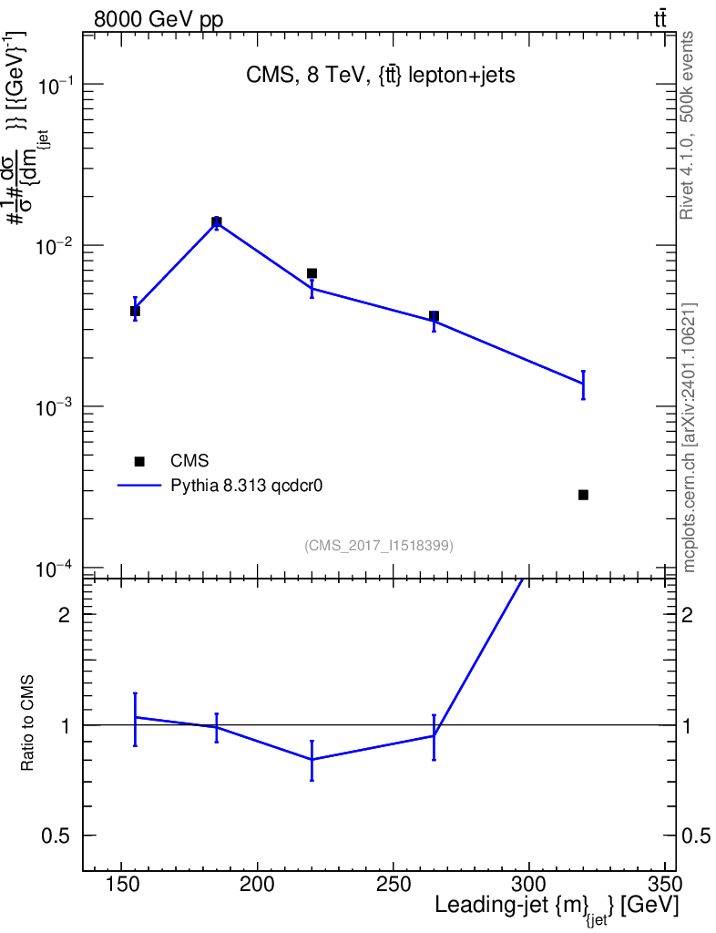Lines: data, pythia8 8.313 qcdcr0 |