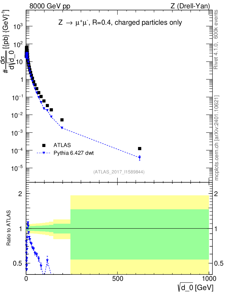 Lines: data, pythia6 6.427 dwt |