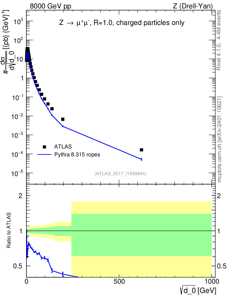 Lines: data, pythia8 8.315 ropes |