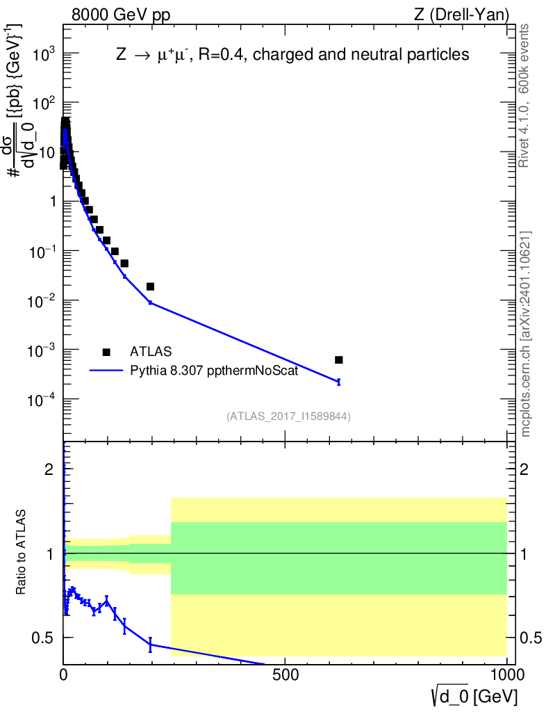 Lines: data, pythia8 8.307 ppthermNoScat |