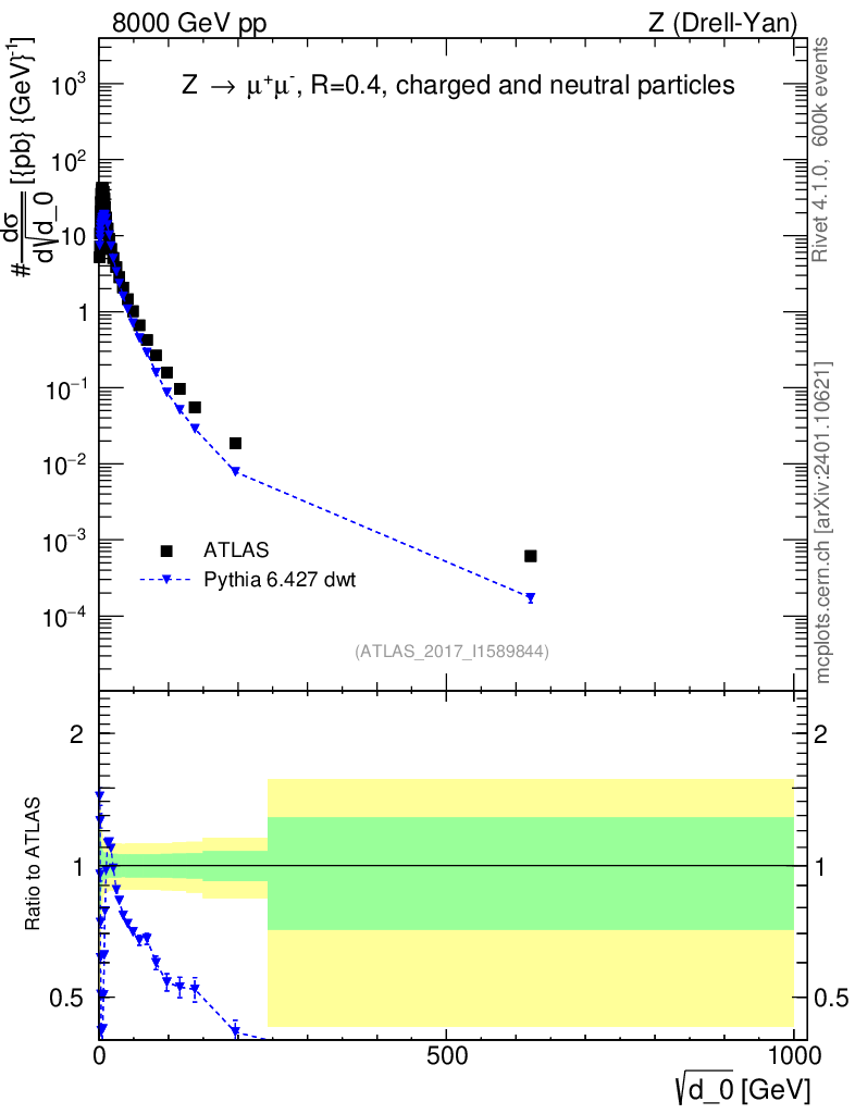 Lines: data, pythia6 6.427 dwt |