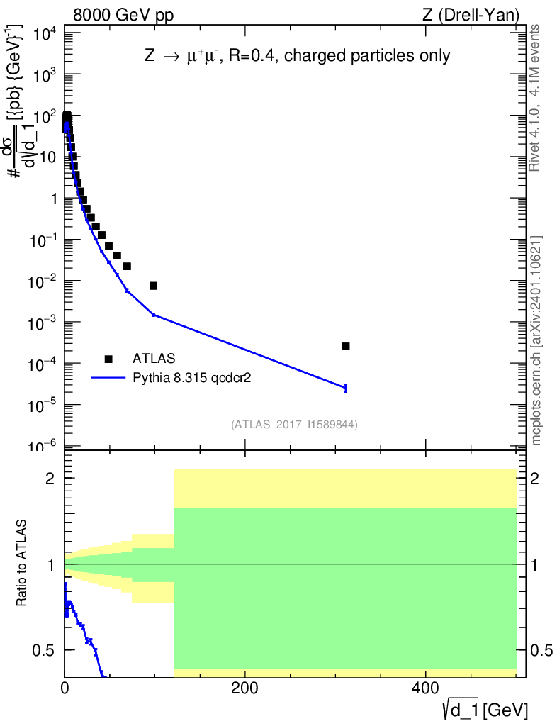 Lines: data, pythia8 8.315 qcdcr2 |
