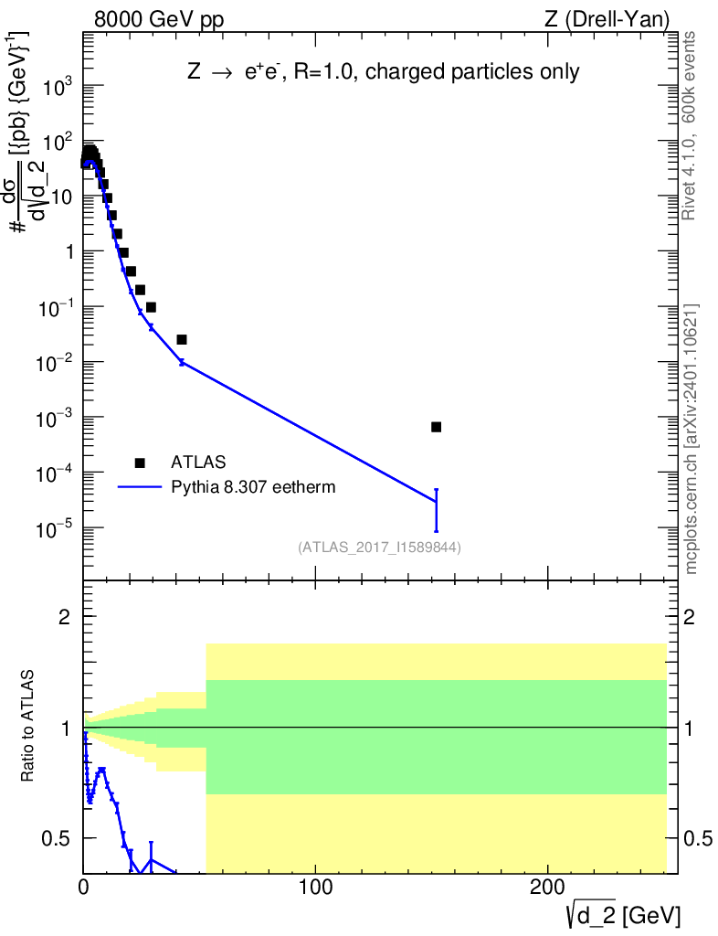 Lines: data, pythia8 8.307 eetherm |