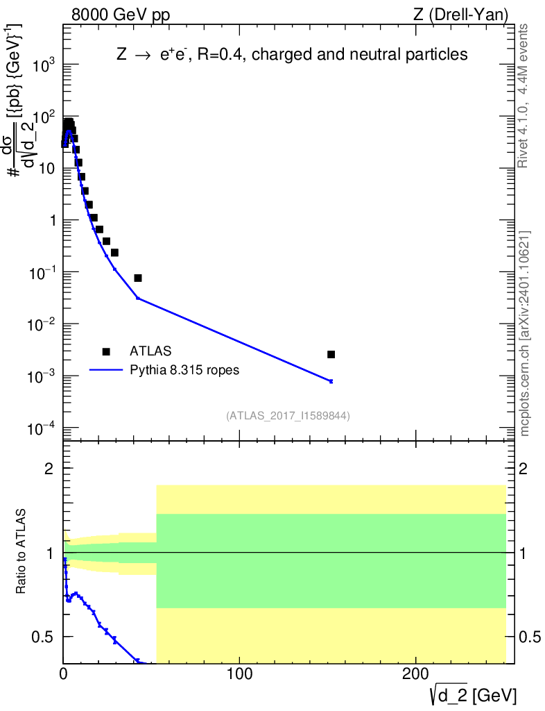 Lines: data, pythia8 8.315 ropes |
