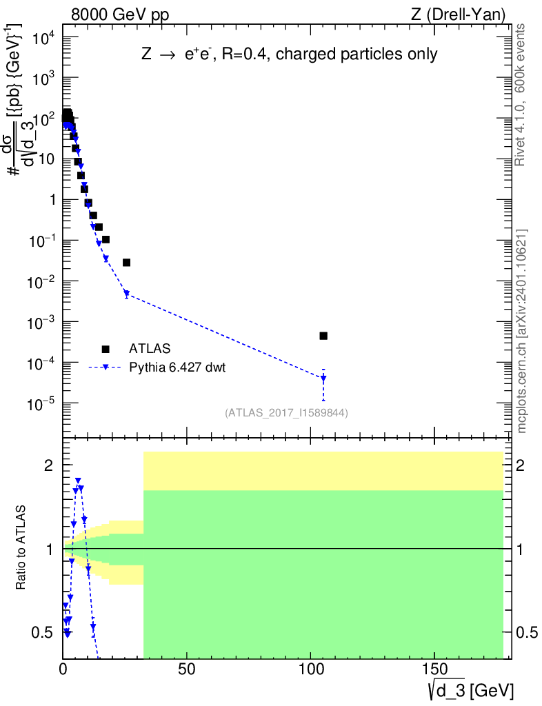 Lines: data, pythia6 6.427 dwt |