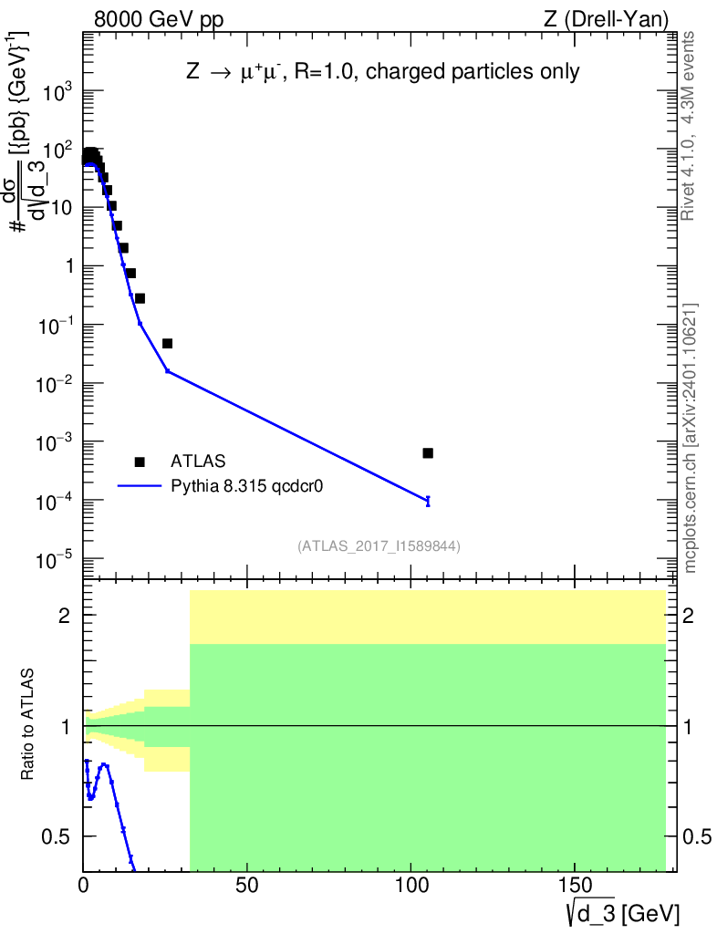 Lines: data, pythia8 8.315 qcdcr0 |