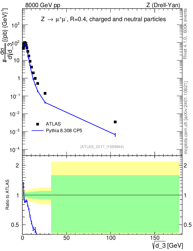 Lines: data, pythia8 8.308 CP5 |