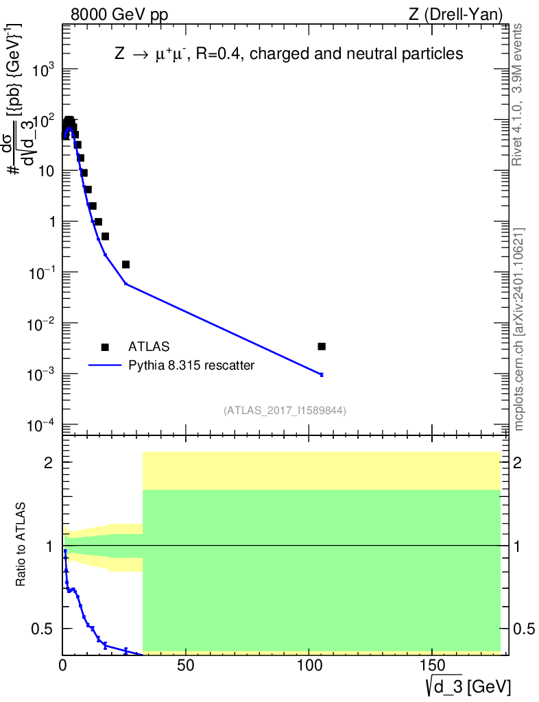 Lines: data, pythia8 8.315 rescatter |
