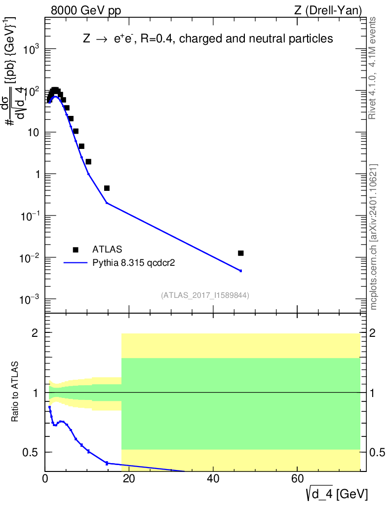 Lines: data, pythia8 8.315 qcdcr2 |