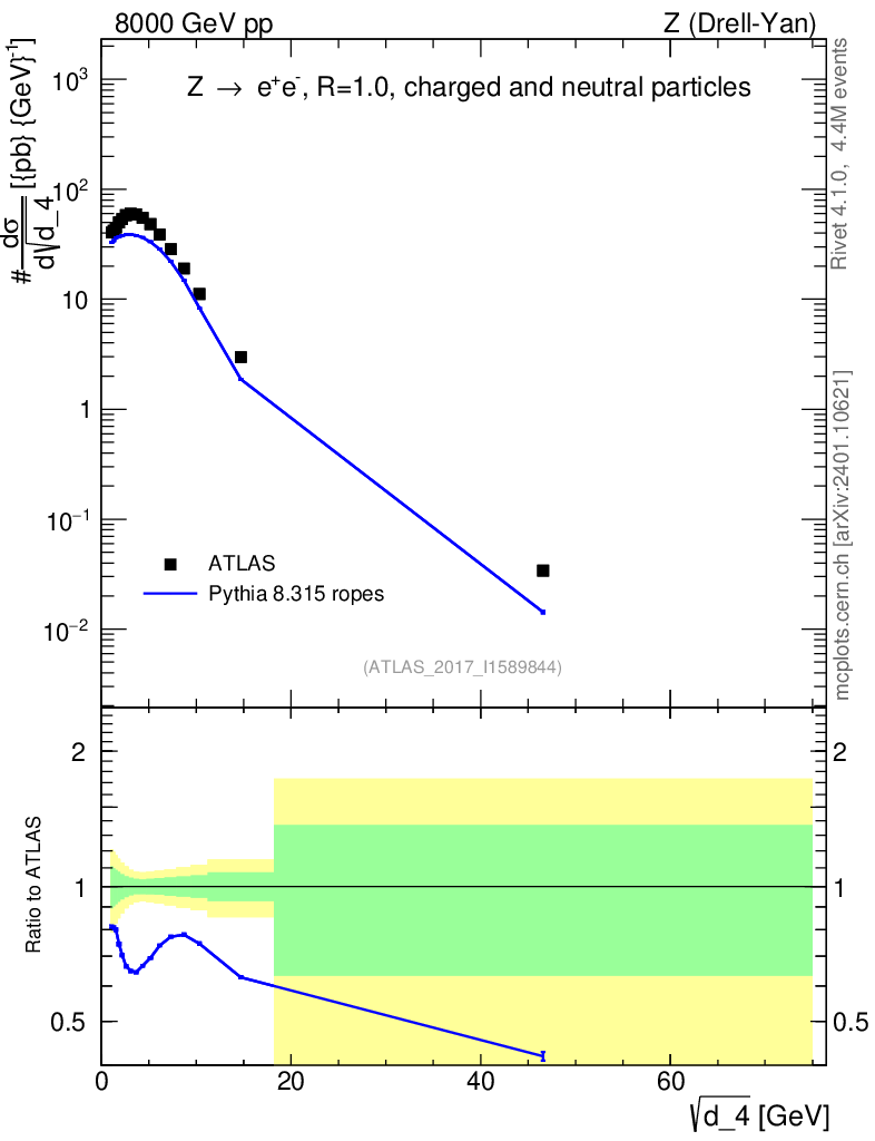 Lines: data, pythia8 8.315 ropes |