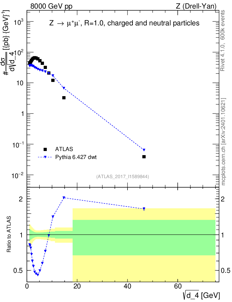 Lines: data, pythia6 6.427 dwt |