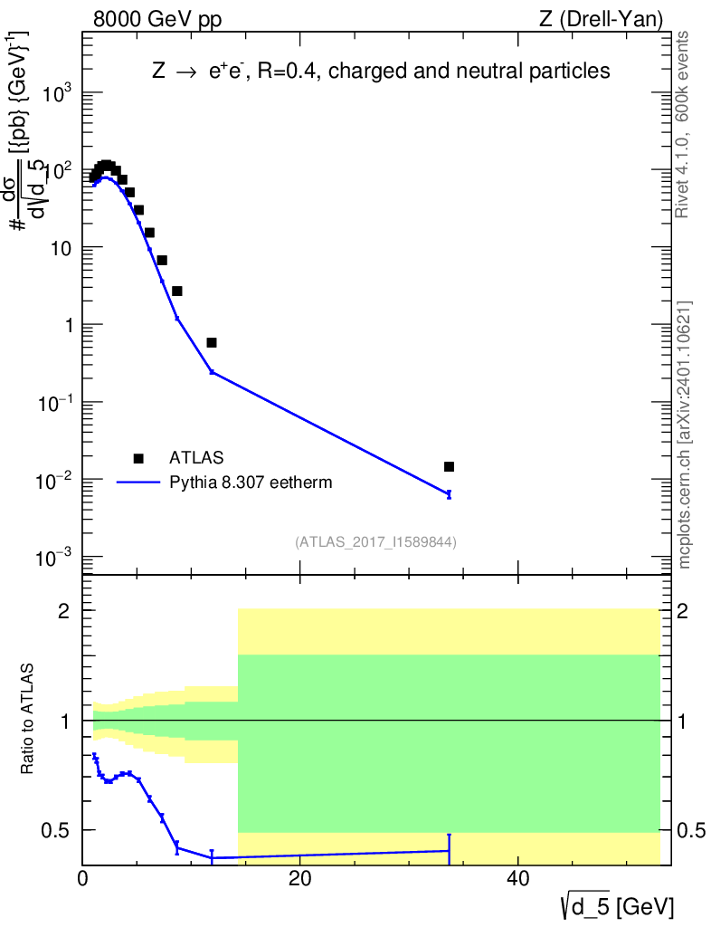Lines: data, pythia8 8.307 eetherm |