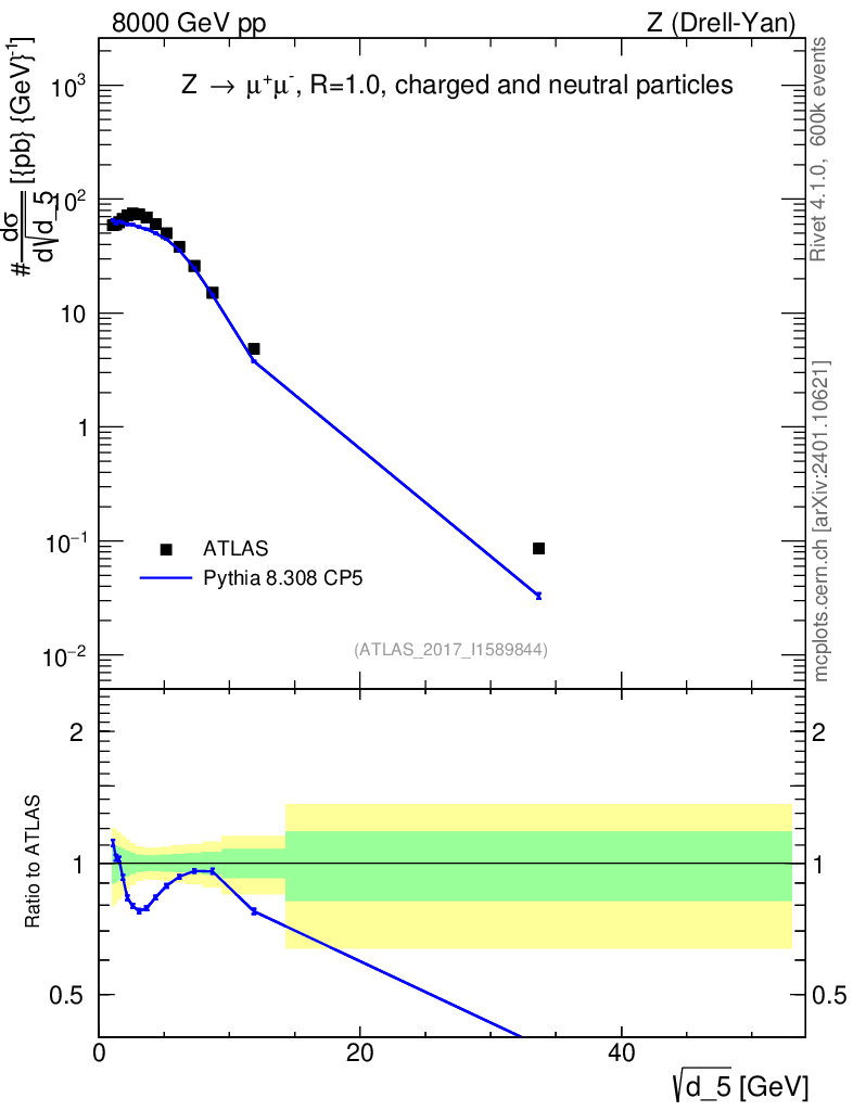 Lines: data, pythia8 8.308 CP5 |