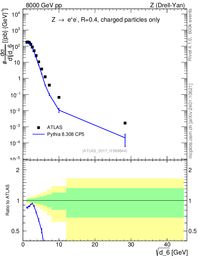 Lines: data, pythia8 8.308 CP5 |