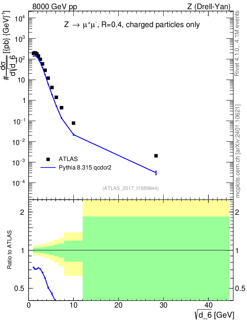 Lines: data, pythia8 8.315 qcdcr2 |