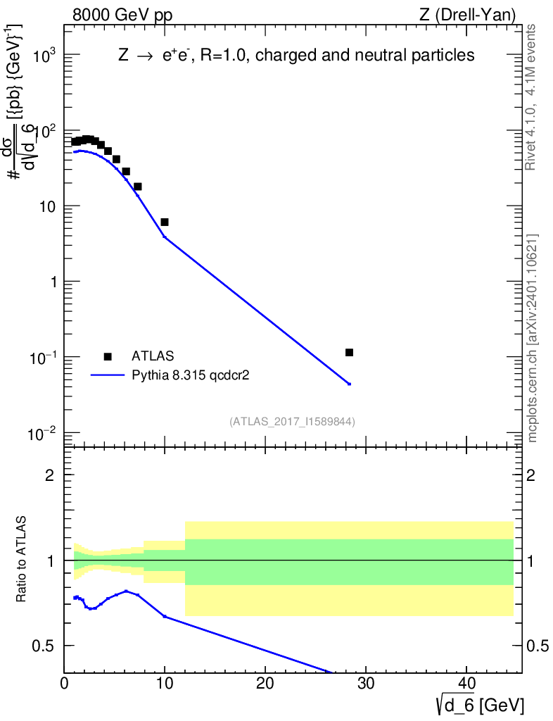 Lines: data, pythia8 8.315 qcdcr2 |