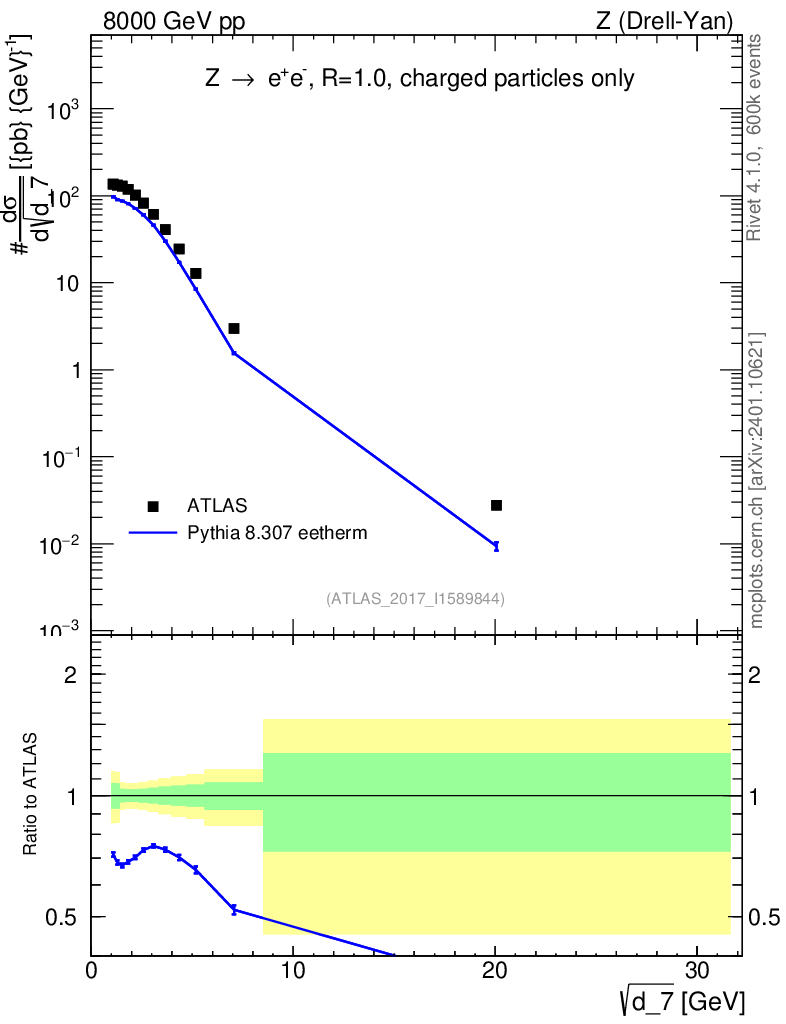 Lines: data, pythia8 8.307 eetherm |