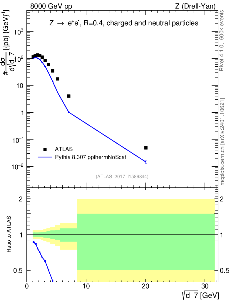 Lines: data, pythia8 8.307 ppthermNoScat |