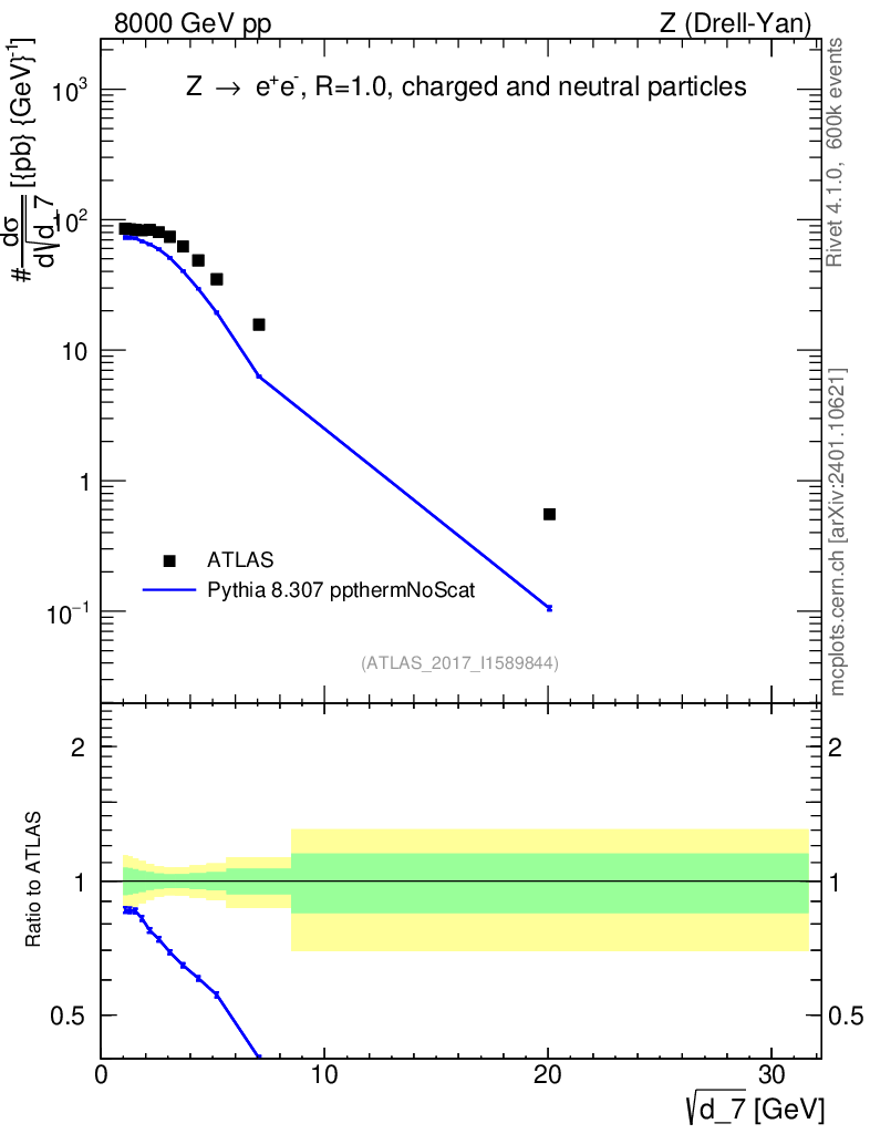 Lines: data, pythia8 8.307 ppthermNoScat |