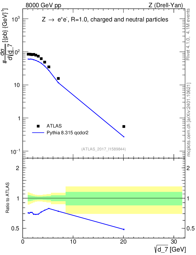 Lines: data, pythia8 8.315 qcdcr2 |