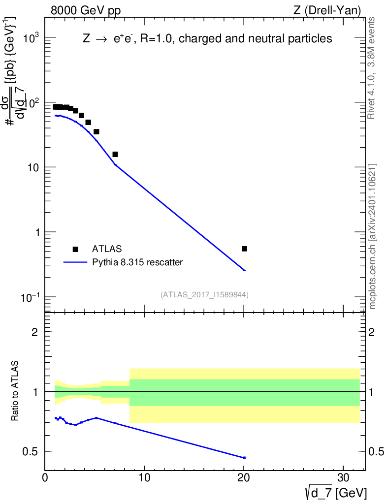 Lines: data, pythia8 8.315 rescatter |