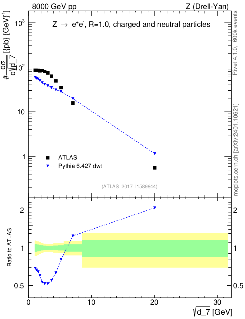 Lines: data, pythia6 6.427 dwt |