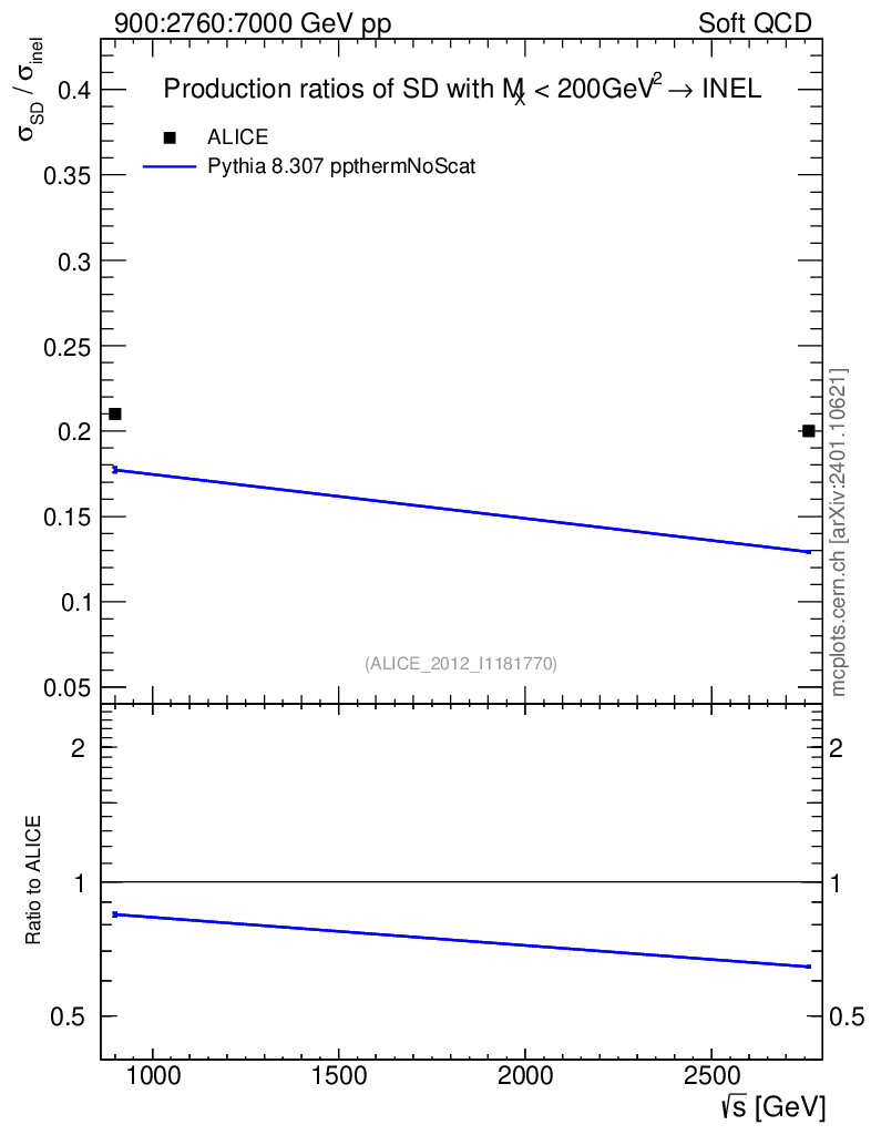 Lines: data, pythia8 8.307 ppthermNoScat |
