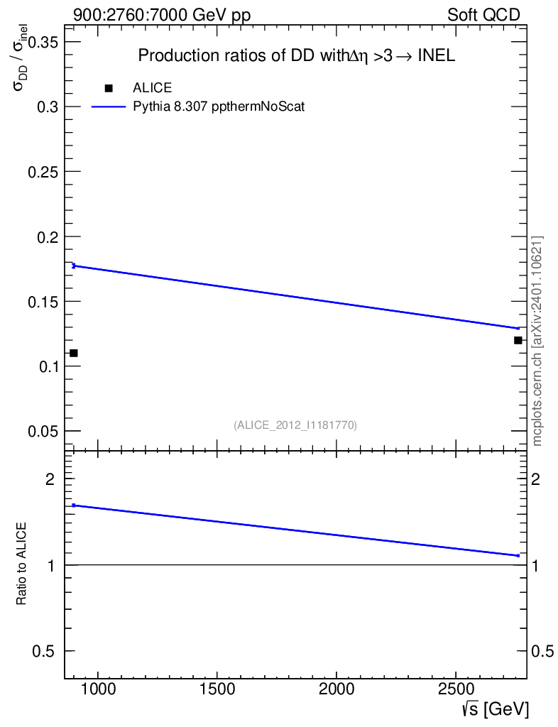 Lines: data, pythia8 8.307 ppthermNoScat |