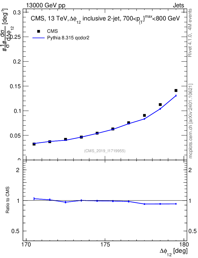Lines: data, pythia8 8.315 qcdcr2 |