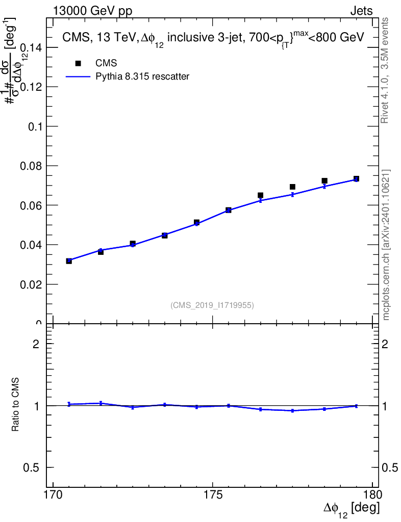 Lines: data, pythia8 8.315 rescatter |