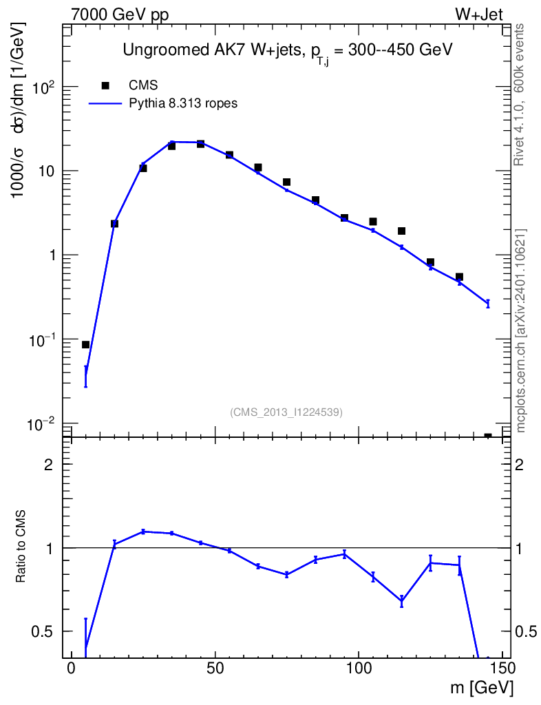 Lines: data, pythia8 8.313 ropes |