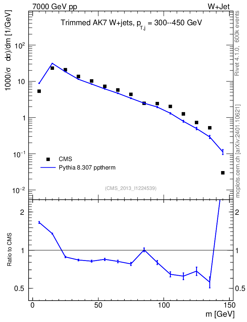 Lines: data, pythia8 8.307 pptherm |