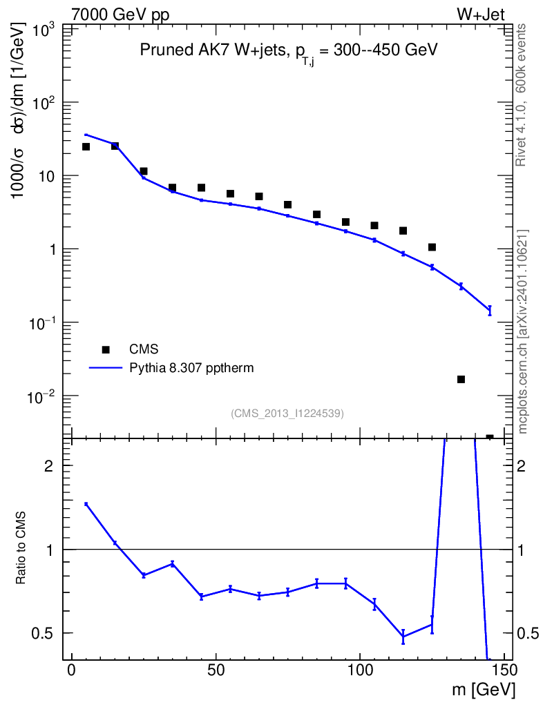 Lines: data, pythia8 8.307 pptherm |